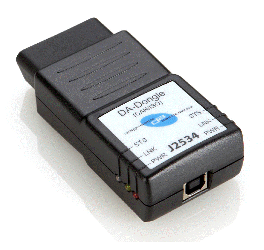 The DA-Dongle J2534 is a low cost high-performance pass-thru (SAE J2534) vehicle interface. This unit connects directly to the vehicle OBDII (Diagnostic) connector; it then connects to any laptop via a USB 2.0 cable. Once the J2534 Driver files are loaded, this product will allow normal operation with OEM compliant J2534 diagnostic applications. This device supports CAN, FT CAN, and ISO protocols